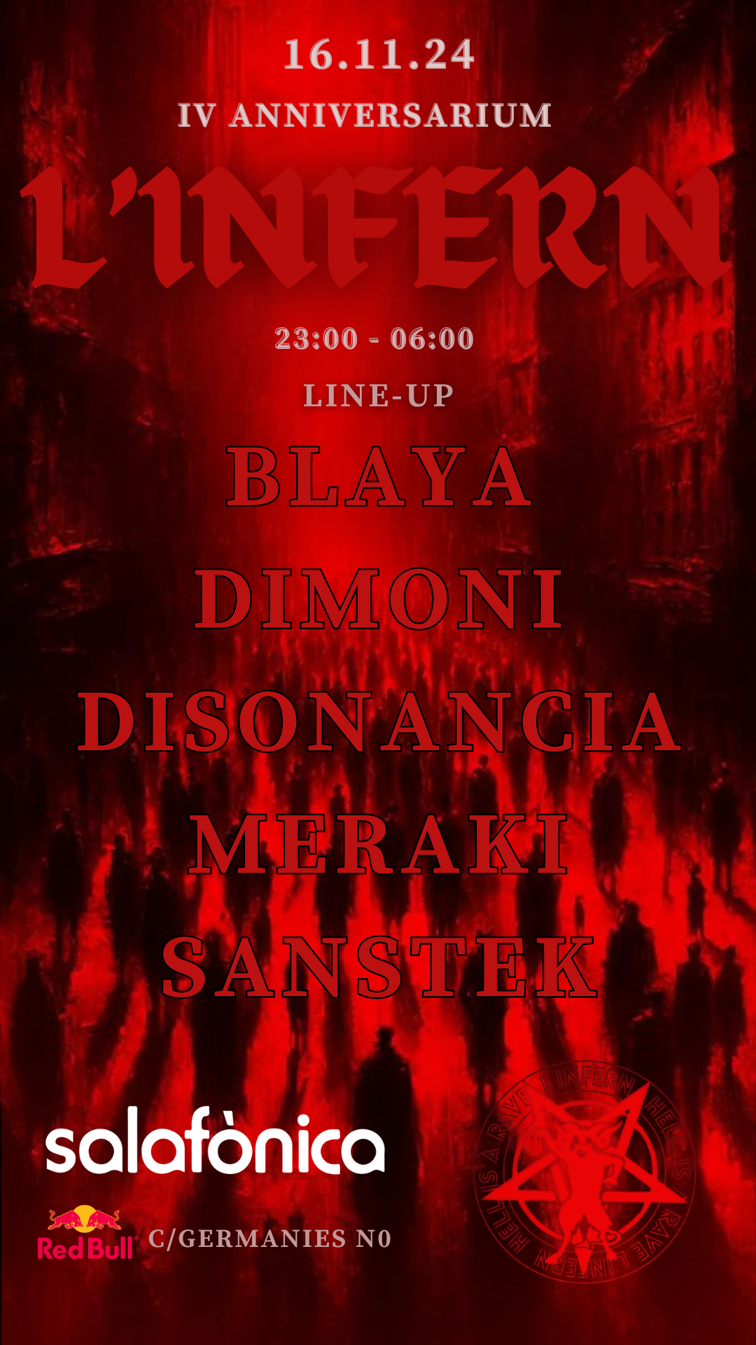 Para esta edición contamos con full equipo l’infern @Goat Rat con su live set junto a los dos fundadores Dimoni Blaya en cabina.